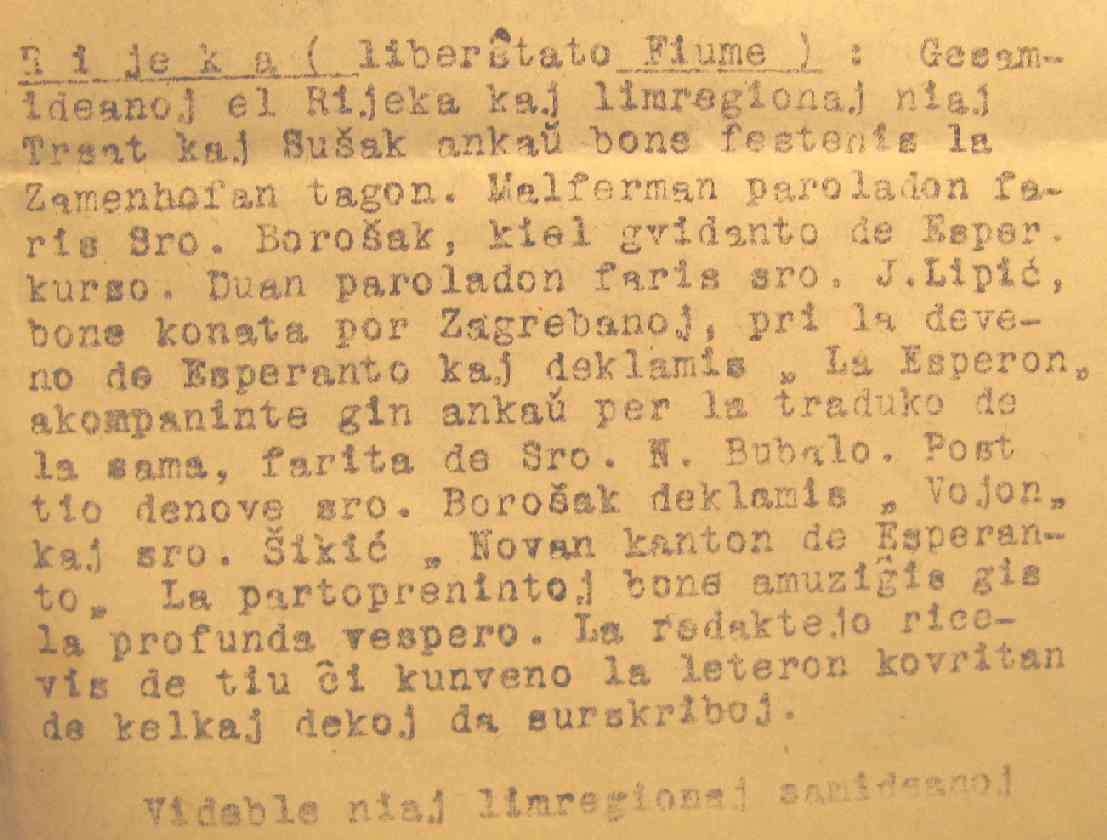 povijesti esperanta u Rijeci (esp.) (tekst iz kongresne