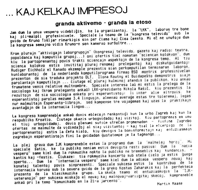 detala raporto pri la IJK en Zagreb (kroatlingve) - la aŭtoro Zlatko Tišljar