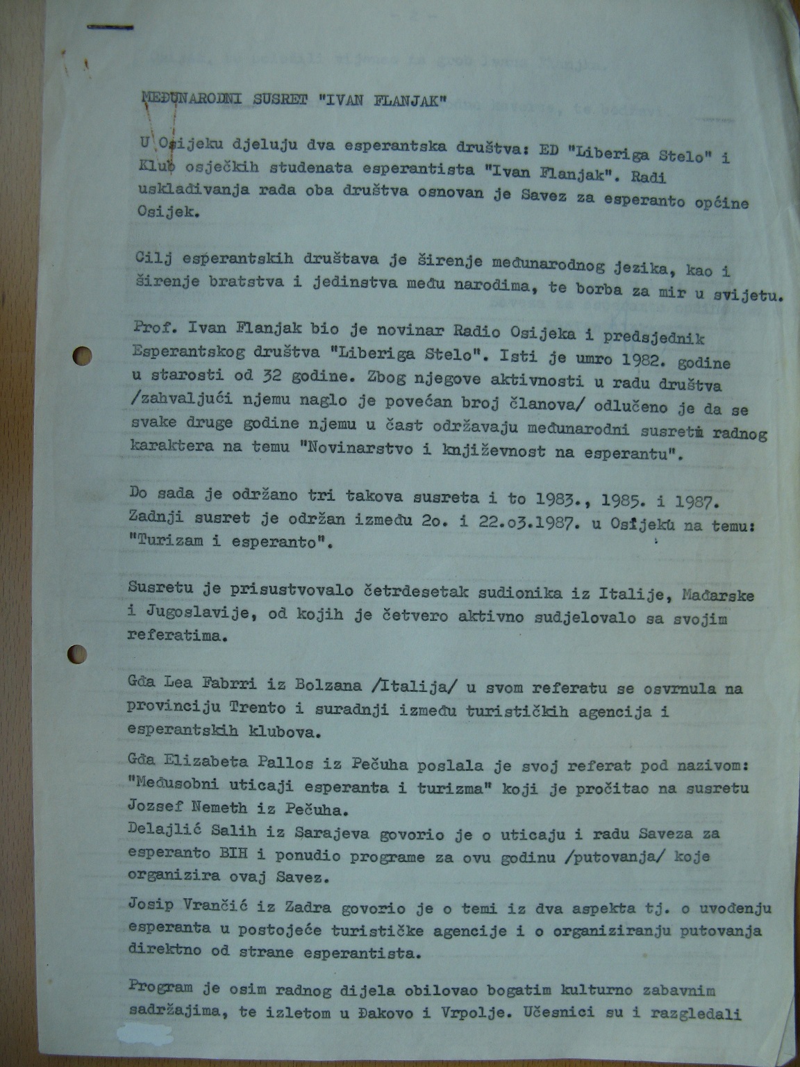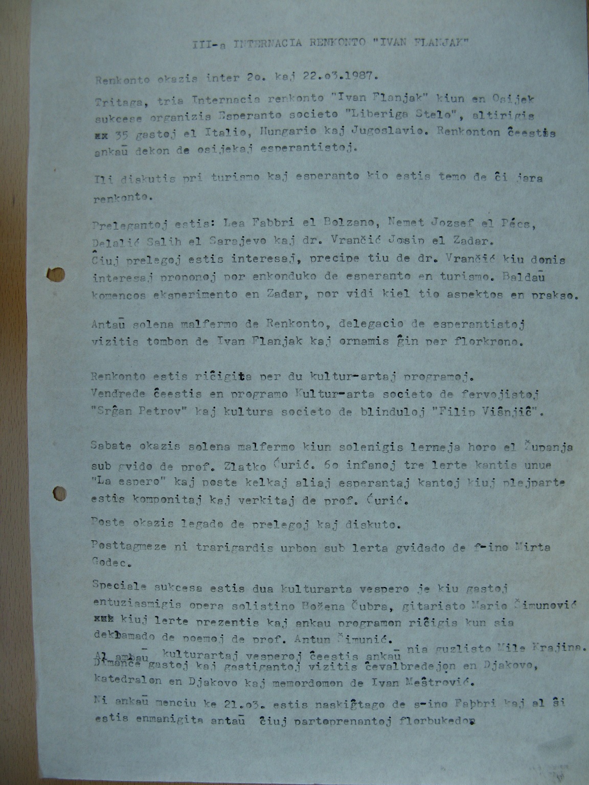 osijekaj esperantistoj) t.n. Internacia Memorkunveno "Ivan Flanjak".