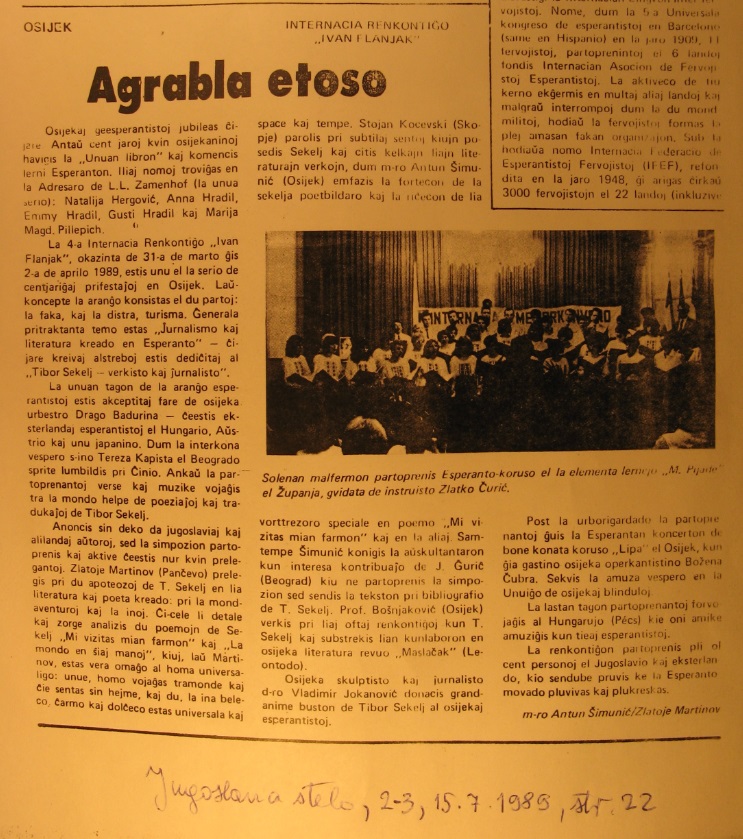 gubitak za esperanto u Osijeku. U godinama 1983, 1985, 1987. i 1989. su osječki