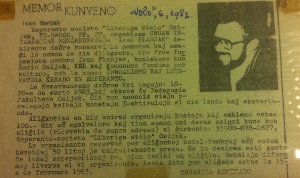 Godine 1982. umro je mladi osječki esperantist Ivan Flanjak, koji je u kratkom